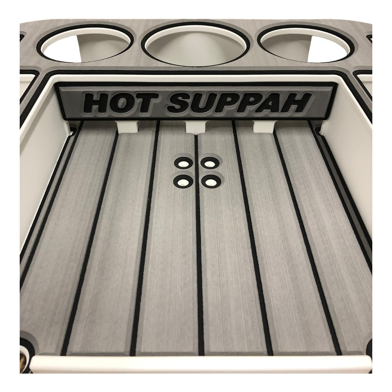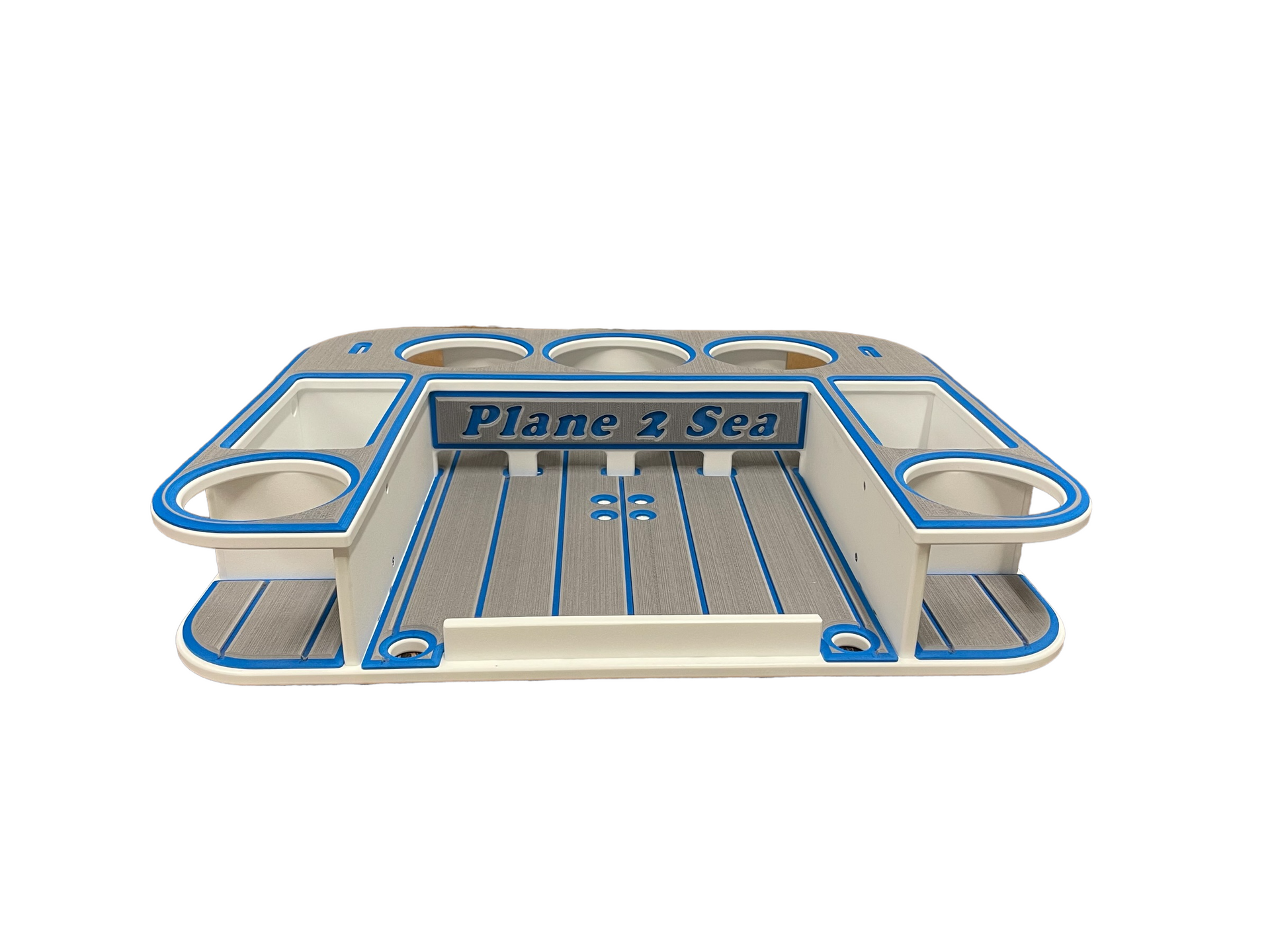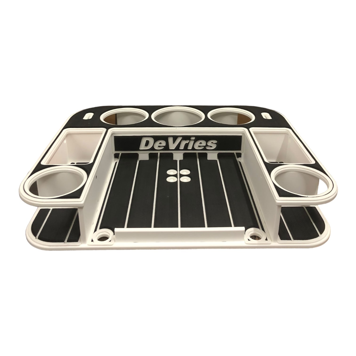 2) Our performance tables feature multiple deep compartments to keep items secure unlike traditional flat tables. We put an end to spilled drinks and having no place to put sandwiches, snacks, or any of the other thousand things you bring boating. 🙂
