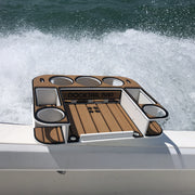 2) Our performance tables feature multiple deep compartments to keep items secure unlike traditional flat tables. We put an end to spilled drinks and having no place to put sandwiches, snacks, or any of the other thousand things you bring boating. 🙂