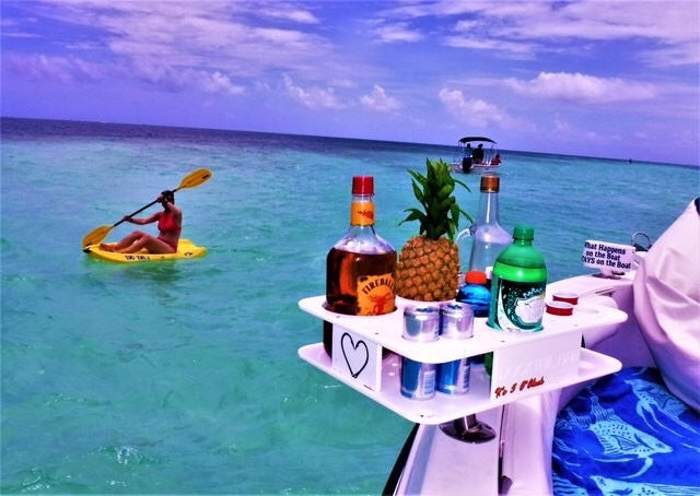 "Awesome "adult beverage " organizer - the envy of the sandbar with this slick idea."